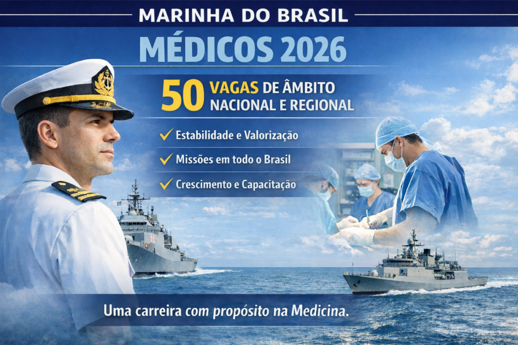 Concurso Marinha 2026: saiu edital com 50 vagas para Oficiais Médicos A Marinha do Brasil deu início a mais um importante processo seletivo para ingresso no Corpo de Saúde – Quadro de Médicos (CP-CSM-Md 2026), consolidando uma das carreiras mais sólidas e estratégicas para médicos que buscam estabilidade, reconhecimento profissional e atuação em contextos de […]