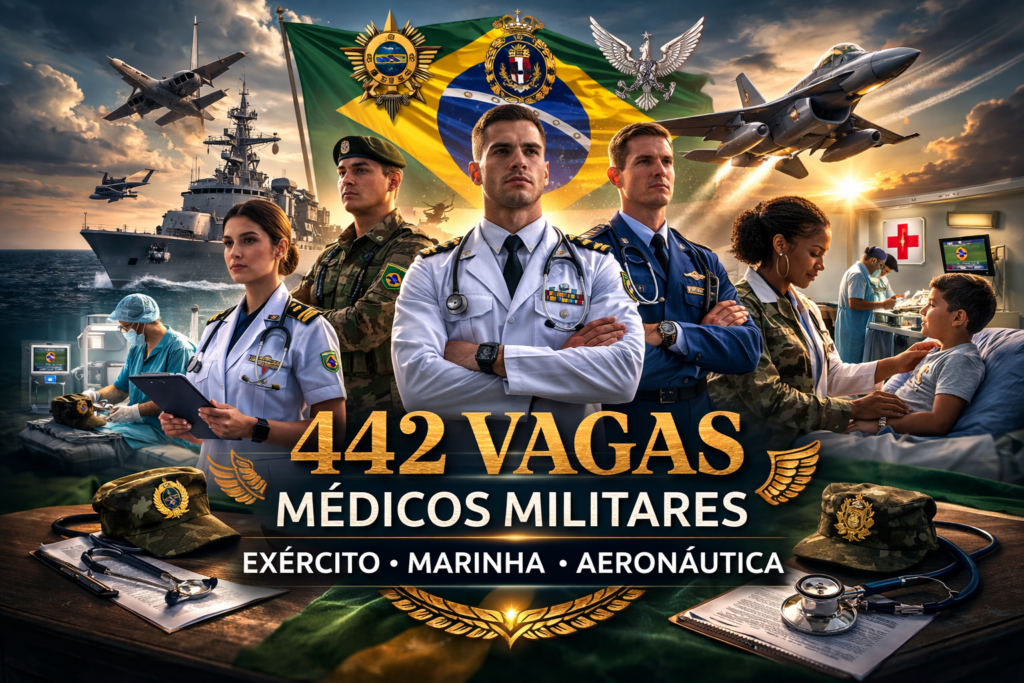 Forças Armadas abrem 442 vagas para Médicos Militares em 2026/2027 Os concursos para Oficiais Médicos das Forças Armadas em 2026/2027 confirmam a abertura de 442 vagas distribuídas entre as três Forças, consolidando um dos maiores ciclos de ingresso da última década. Para médicos que enxergam na carreira militar um projeto de vida estruturado, estável e […]