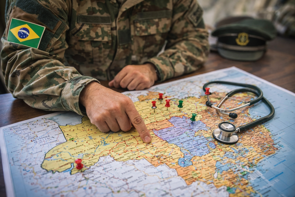 Além disso, a atuação do médico militar acompanha essa diversidade de contextos. O Sistema de Saúde das Forças Armadas conta com uma ampla rede de Unidades de Saúde distribuídas em todo o território brasileiro, desde grandes centros urbanos até regiões mais remotas, garantindo o apoio à tropa e aos seus dependentes, de acordo com as necessidades operacionais.