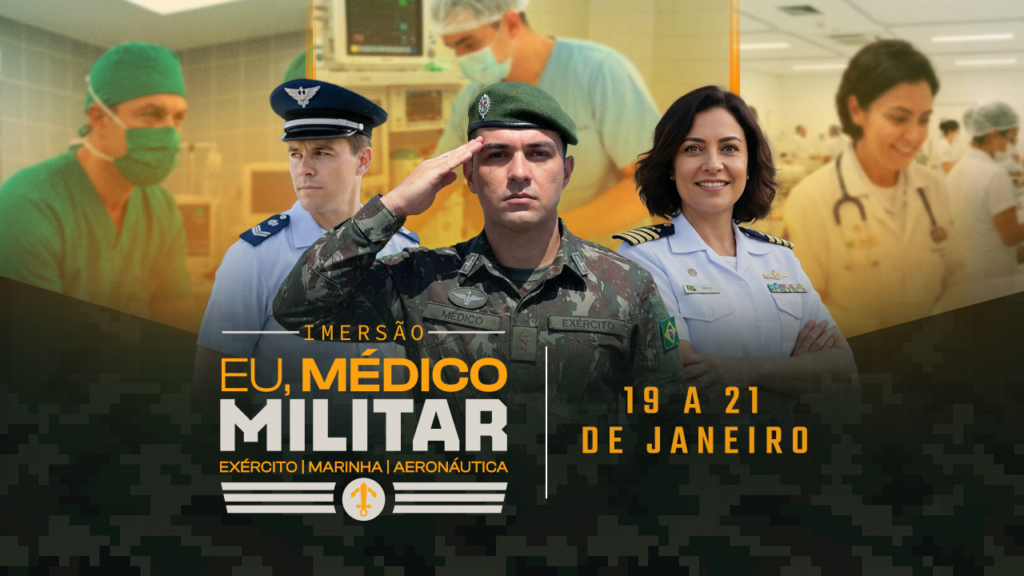 Com esse propósito, convidamos você para a Imersão de Apresentação do Preparatório para Concursos Militares, que acontecerá nos dias 19, 20 e 21 de janeiro de 2026, às 20h. Trata-se de um encontro pensado para médicos que desejam planejar o futuro profissional com consciência, estabilidade e sentido, e não apenas resistir à rotina assistencial.